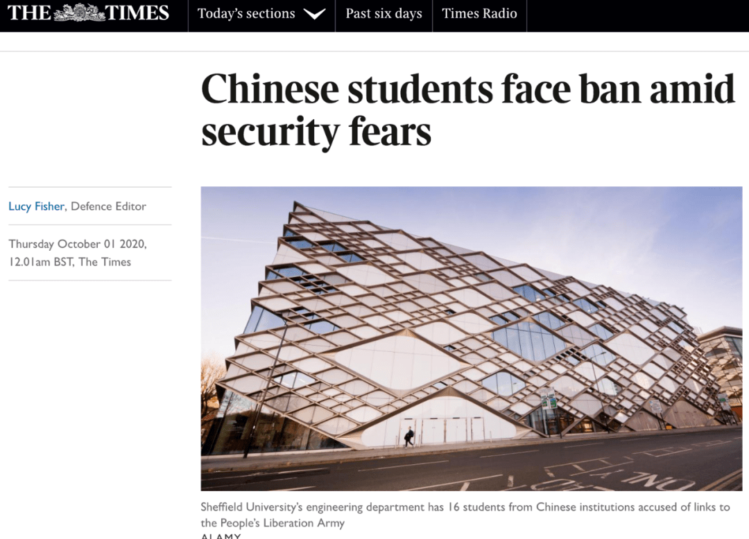 然而,ATAS网站补充,所有申请上述“敏感学科”的非英国公民研究生必须事前获得批准;来自欧洲经济区国家、瑞士和特定国家(美国、加拿大、澳大利亚、新西兰、日本、韩国和新加坡)的学生则拥有豁免权。对此更新政策,《泰晤士报》作出题目为“出于安全担忧,中国学生将面临禁令”的报道。