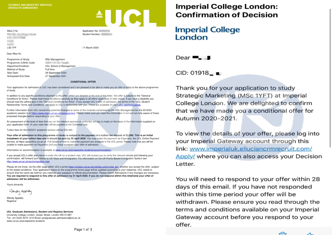 可也有人在这非常时期逆势上扬!近期,一通优秀学员Z同学与H同学,又分别拿下IC市场战略硕士和UCL管理学硕士offer!学员们在一通导师的指导下,从文书、简历、推荐信的材料准备,到网申问题的填写、面试问题的解析与面试细节的把握,准备到事无巨细。最终,斩获了UCL和IC两所G5名校offer。在英国史上最难申请季,能拿到G5 名校商学院/管理学院offer,不得不说,一通导师果然都是大神级的存在呀!